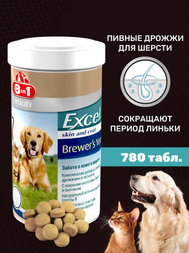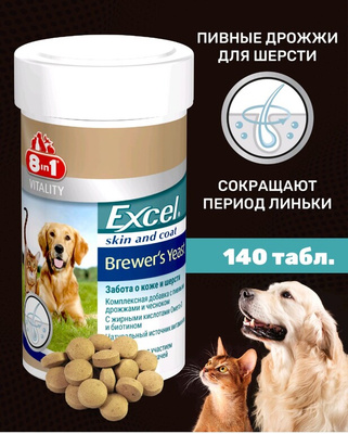 8in1 Exсel Brewer’s Yeast Эксель Пивные дрожжи для собак и кошек (140таб) (109495)