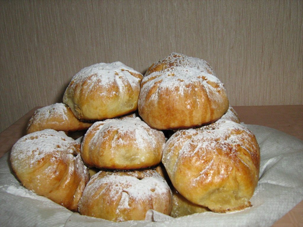 Такие булочки можно приготовить из разных видов теста, придать любую форму. Классическое тесто делается на дрожжах и молоке, можно сделать и слоеное, на кефире, на воде, без дрожжей – вариантов очень много. Яблоки для начинки тоже готовятся по-разному: натираются на терке, нарезаются кубиками, дольками, карамелизируются с сахаром. Мы рассмотрим самые удачные рецепты приготовления вкусных и пышных булочек с яблоком и корицей.