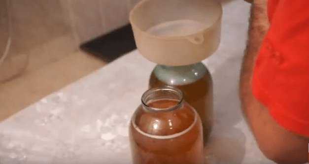 - Когда напиток перестанет бродить, как правило, это происходит через неделю, следует его процедить сквозь марлю, сложенную в 3-4 слоя. Потом его необходимо смешать с оставшимся сахаром и вновь перелить в бутыль.