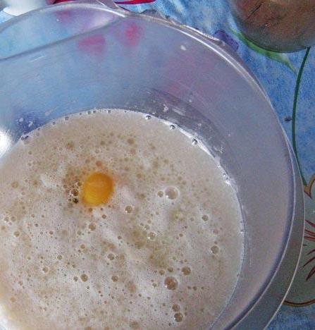 - Далее требуется в смесь из яйца отправить в кефир, посолить и перемешать.