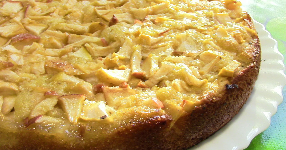 - Простой рецепт заливного яблочного пирога на сковороде
