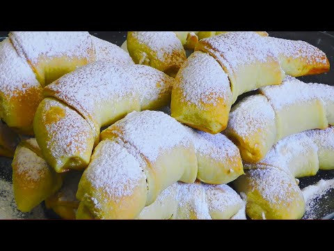 Готовые рогалики немного охладите, посыпьте сахарной пудрой и подавайте к столу.