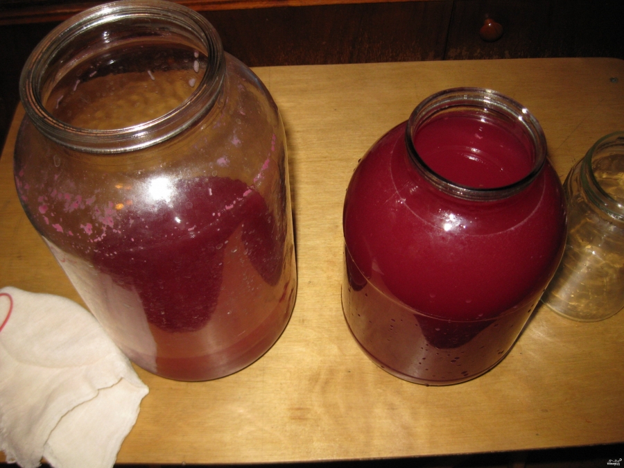 Поэтому прежде, чем его отжимать, ягоду мнут и заливают водой, добавив сахар. После получившуюся массу ставят бродить в тепле, накрыв марлей. При этом 2-3 раза в день ее перемешивают. Делать это обязательно, иначе сусло скиснет, а мезга, всплывающая на поверхность, покроется плесенью. Через три дня мезгу нужно спрессовать и отжать из нее сок. Затем процедуру повторяют еще раз, и соки двух отжимов соединяют. Использованные воду, сахар и дрожжи, если применяется мытая смородина, вычитаются из количества ингредиентов, предусмотренных рецептом.