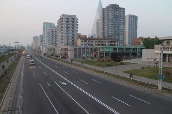 Это нормальный вид для Пхеньяна, можно сказать, что так выглядит город в час пик. Мало людей и пустынные улицы.