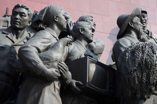 Скульптурная композиция — северные корейцы демонстрируют достижения народного хозяйства.