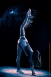 Заморожено динамическое движение, то, что обычно ускользает из внимания именно ввиду своей мимолетности.Пластика человеческого тела плюс почти нематериальный застывший рисунок из порошка в воздухе.